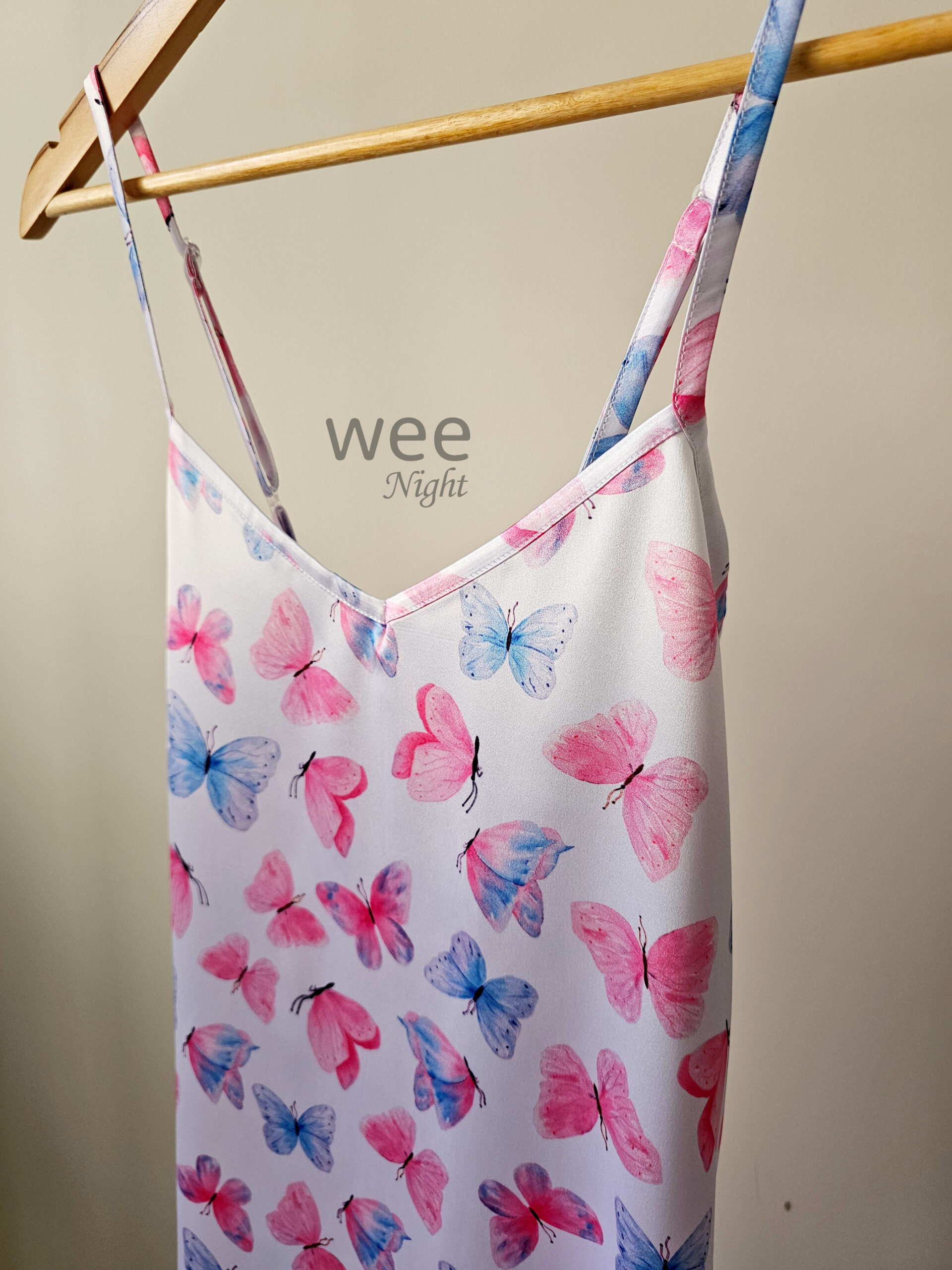 جنس پارچه: ساتن ابریشم پیراهن دارای بند قابلتنظیم است. برای تنخور بهتر، در پشت پیراهن کش ظریف دوخته شده است.